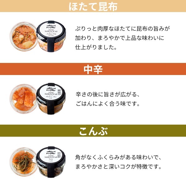 THE MENTAI[ほたて昆布・中辛・こんぶ](各40g) |