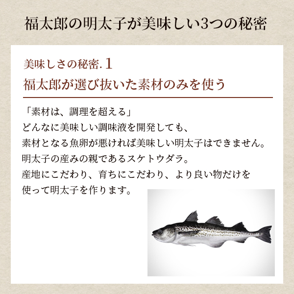 昆布の旨みをじっくり含んだ昆布めんたいは、角がなくふくらみがある味わいで、そのまろやかさと深いコクが特徴です。