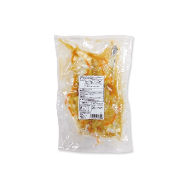 ホキ(ニュージーランド産)、たまねぎ(国産)、みりん、醤油、にんじん(国産)、植物油脂、小麦粉、砂糖、でん粉、かつおぶし、昆布、(一部に小麦・大豆を含む)