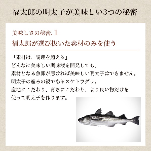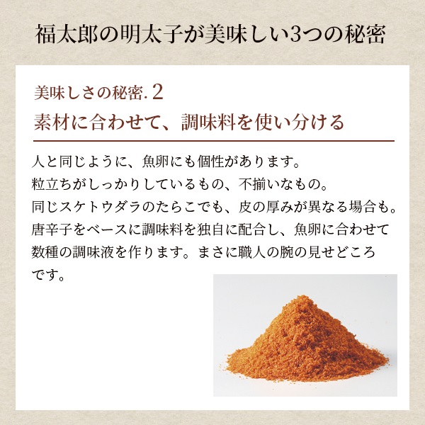 もっとも身が締まり、粒立ちが際立つ時期の恵みを、福太郎独自の製法で、一腹一腹丹念に選別して漬け込みました。